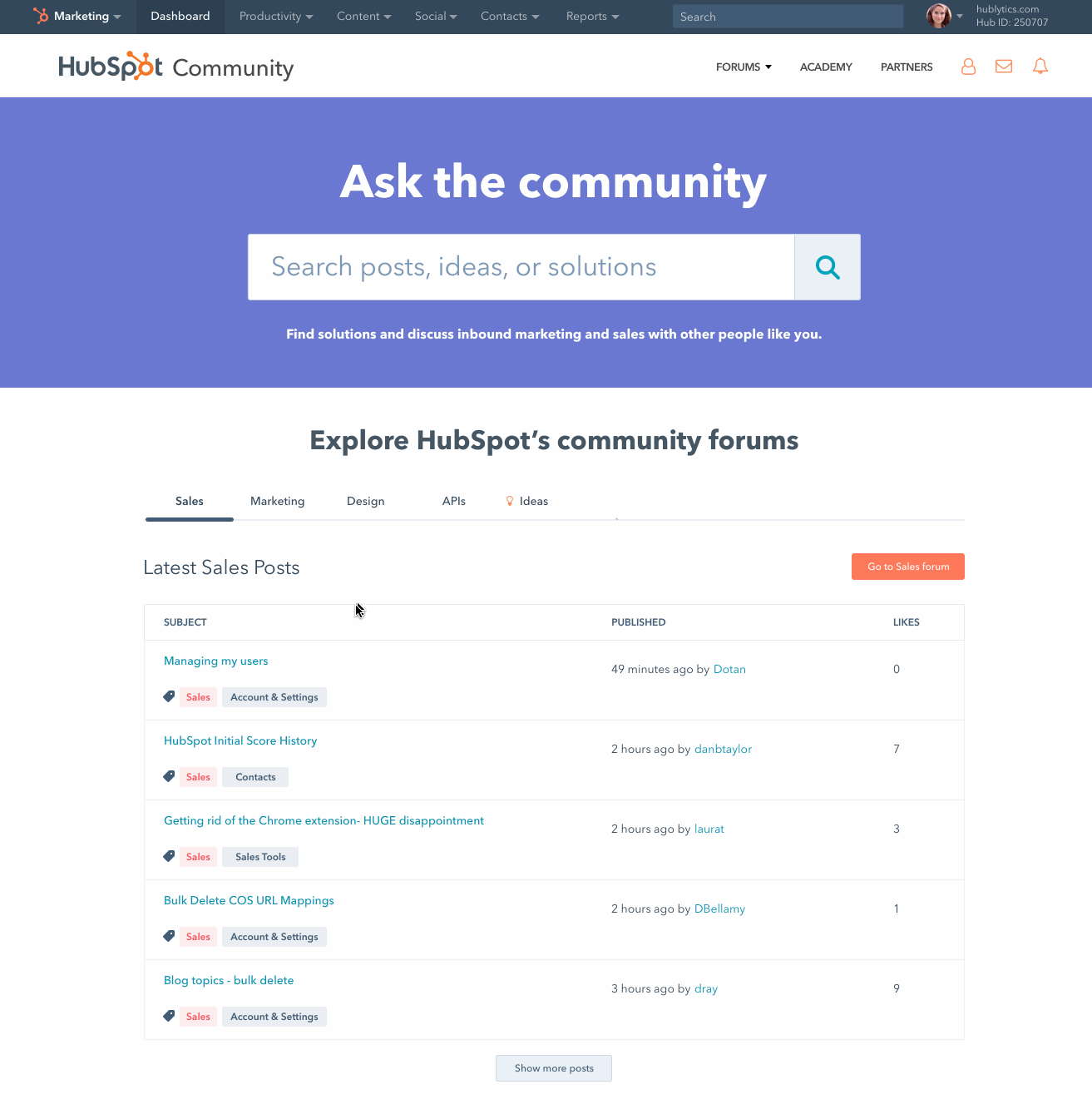 It was very important to keep the users’ goals in mind during this entire process, as the majority are free HubSpot users who do not have access to HubSpot Support. For many of these individuals, the Community forums can make or break their experience with HubSpot. In its previous state, however, the HubSpot Community was not delivering the delightful experience to which our users have grown accustomed from HubSpot.
